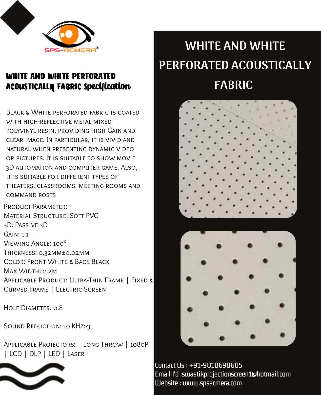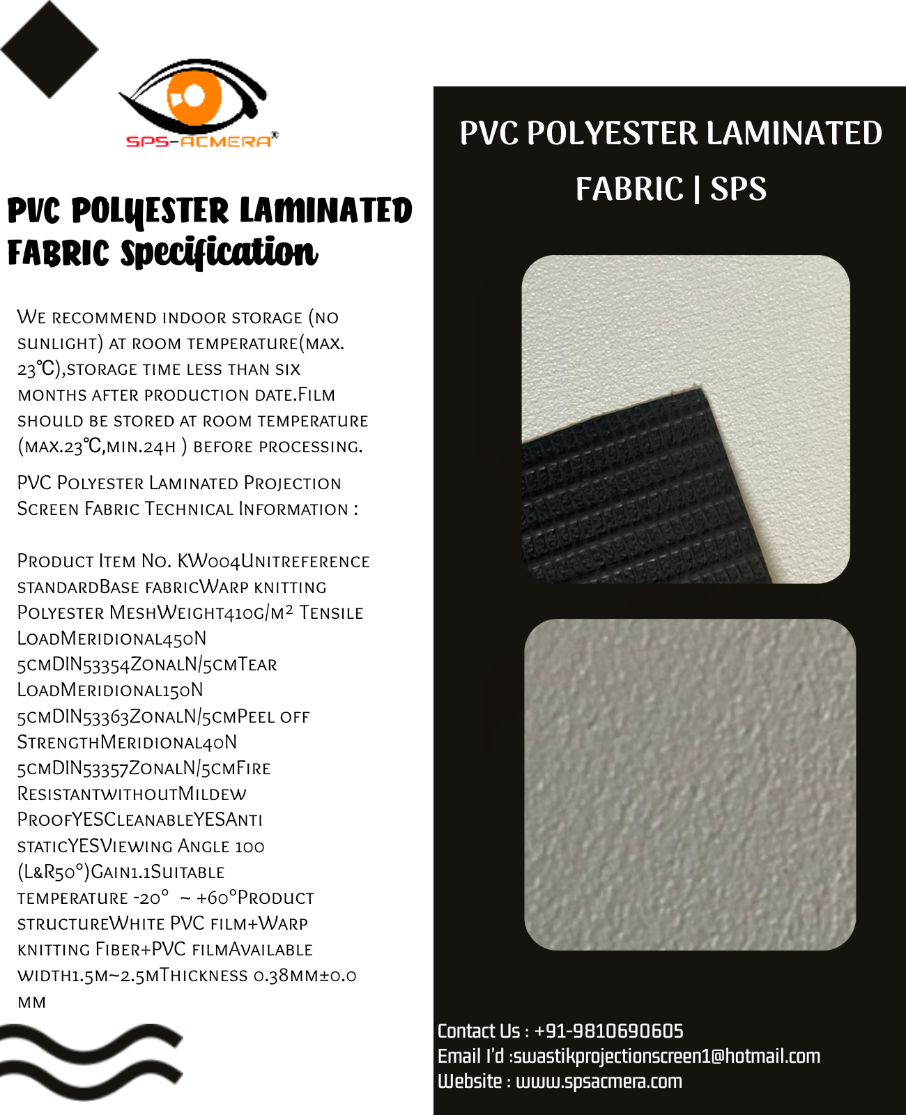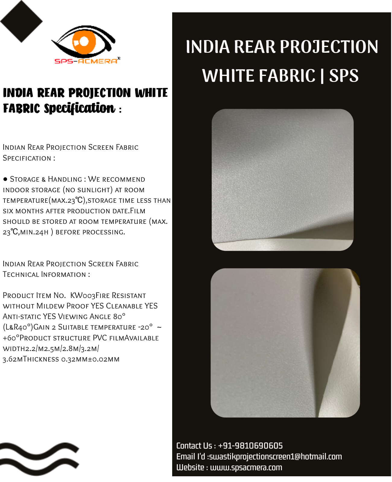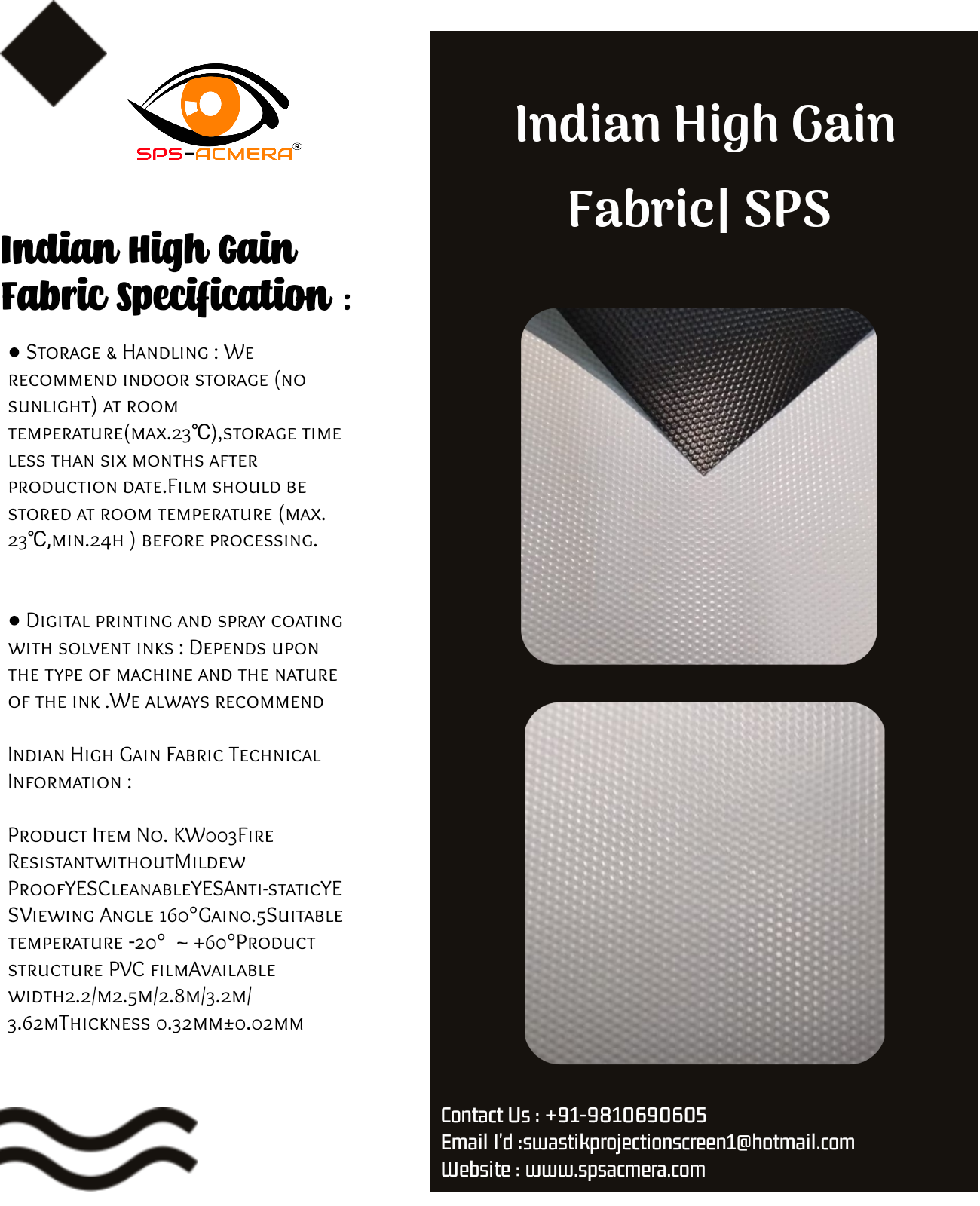 SPS Acmera Provide All Types Of Fabric With Affordable Price. If You Want Any Type Of Projection Screen Fabric So You Can Contact Us.